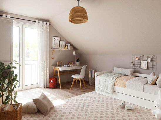 Das Bodensee 129 verströmt eine Atmosphäre der Gemütlichkeit und Großzügigkeit. Sein charmantes Satteldach und die variablen Grundrisse bieten viel Raum für individuelles Wohnen. Das lichtdurchflutete Wohnzimmer, die angrenzende Essecke, und das geräumige Schlafzimmer im Dachgeschoss mit Ankleide schaffen eine Oase der Ruhe und des Wohlbefindens. Jeder Winkel dieses Hauses ist eine Einladung zum Genießen und Entspannen – ein wahrer Traum für jede Familie.