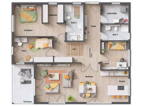 Wir bauen deine eigenen vier Wände genau nach deinem Geschmack: Der Haustyp gibt einen Rahmen, aber die Gestaltung ist ganz dir überlassen. Entscheide dich für den Grundriss, der am besten zu deiner Wohnsituation und deinem Lebensstil passt und erlebe so hohen Wohnkomfort wie noch nie zuvor.