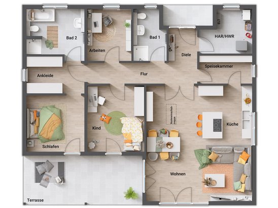 Wohnen auf einer Ebene mit fünf individuellen Grundrissideen